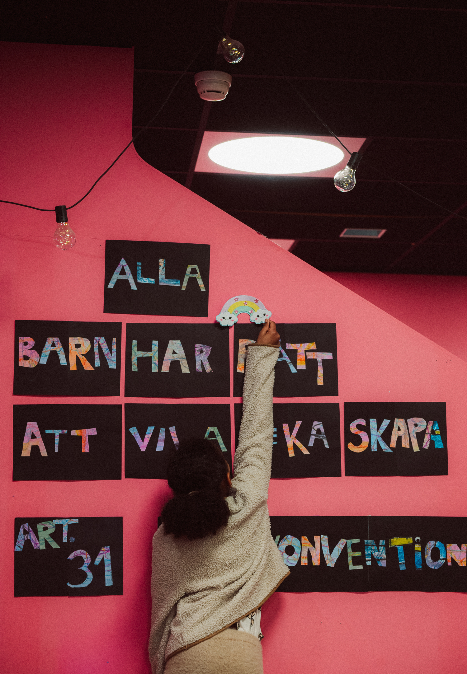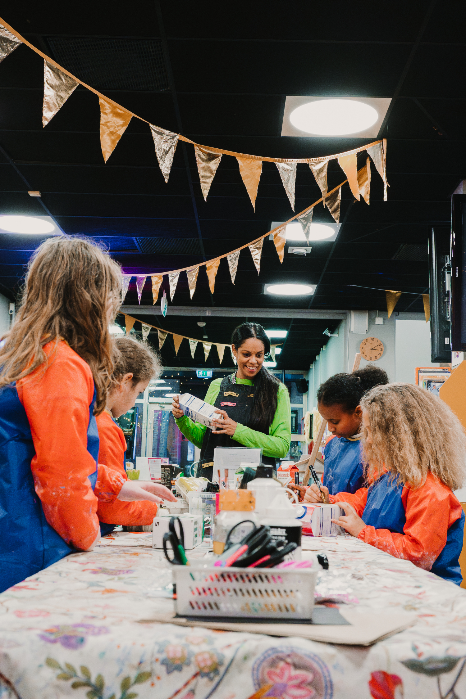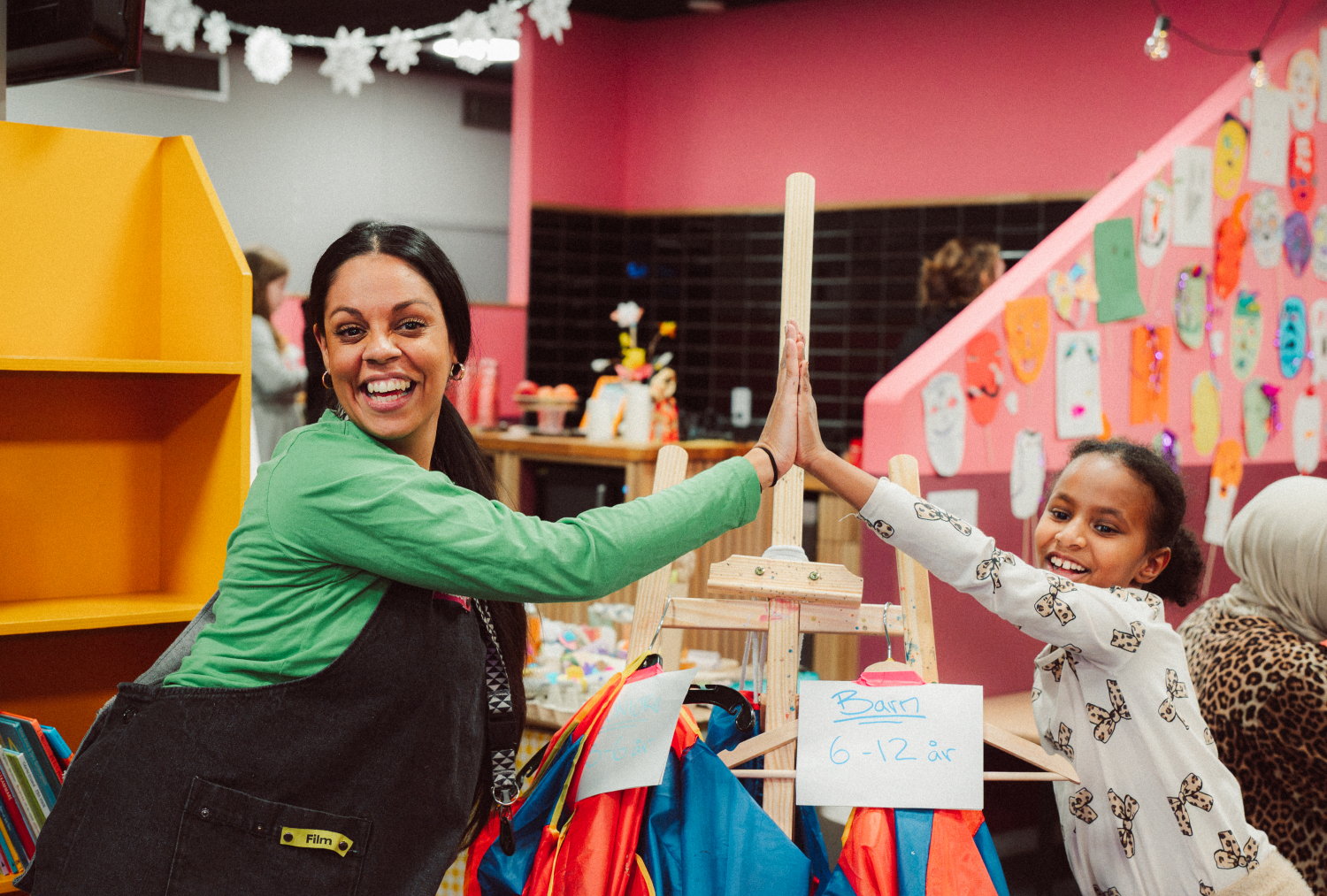 Vi tycker att barns idéer och skapande ska få ta plats i det offentliga rummet – och bli sedda på riktigt. Därför ställer vi ut konstverk av alla barn och unga mellan 5 och 13 år i vår foajé. Konsten som ställs ut 6 december 2025-29 januari 2026 har skapats av barn som deltagit och skapat i Skapandeverkstaden och utställningen firades med ett festligt vernissage.