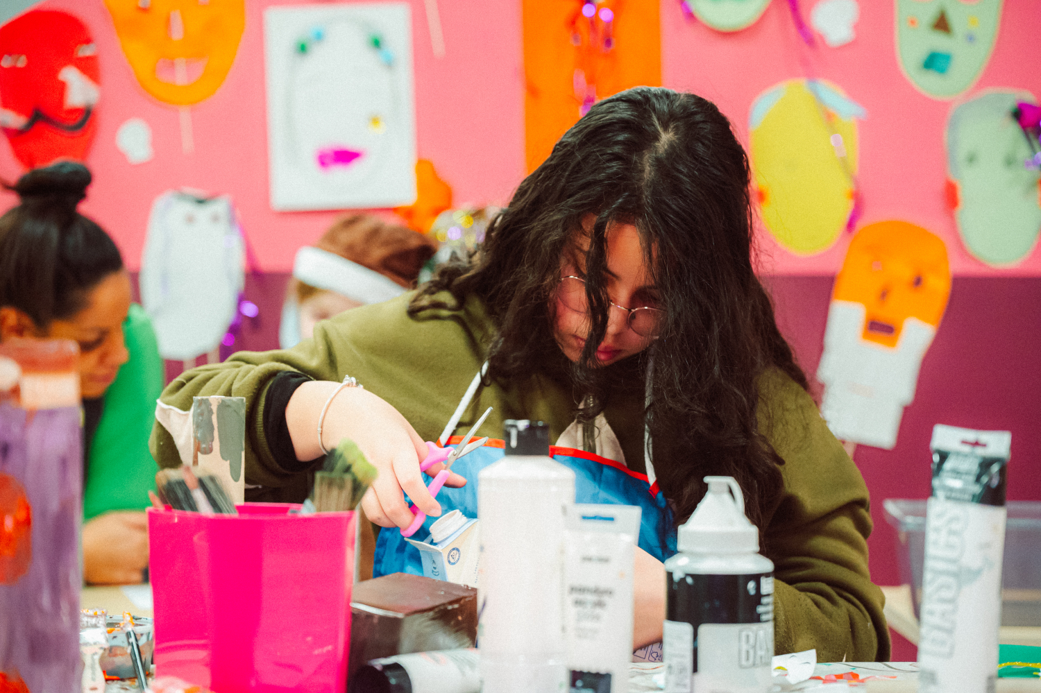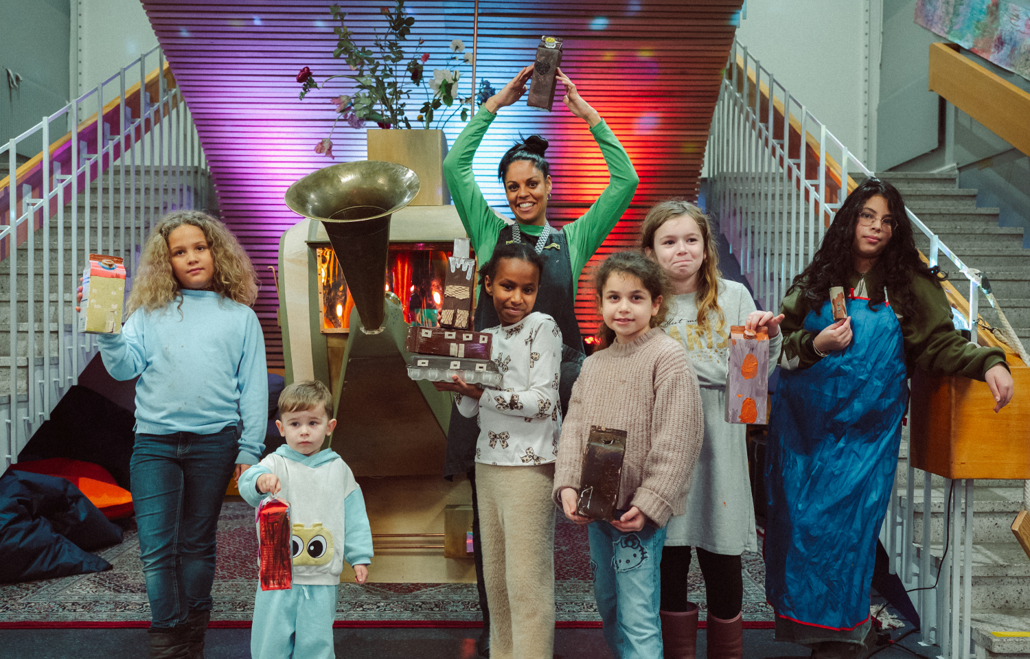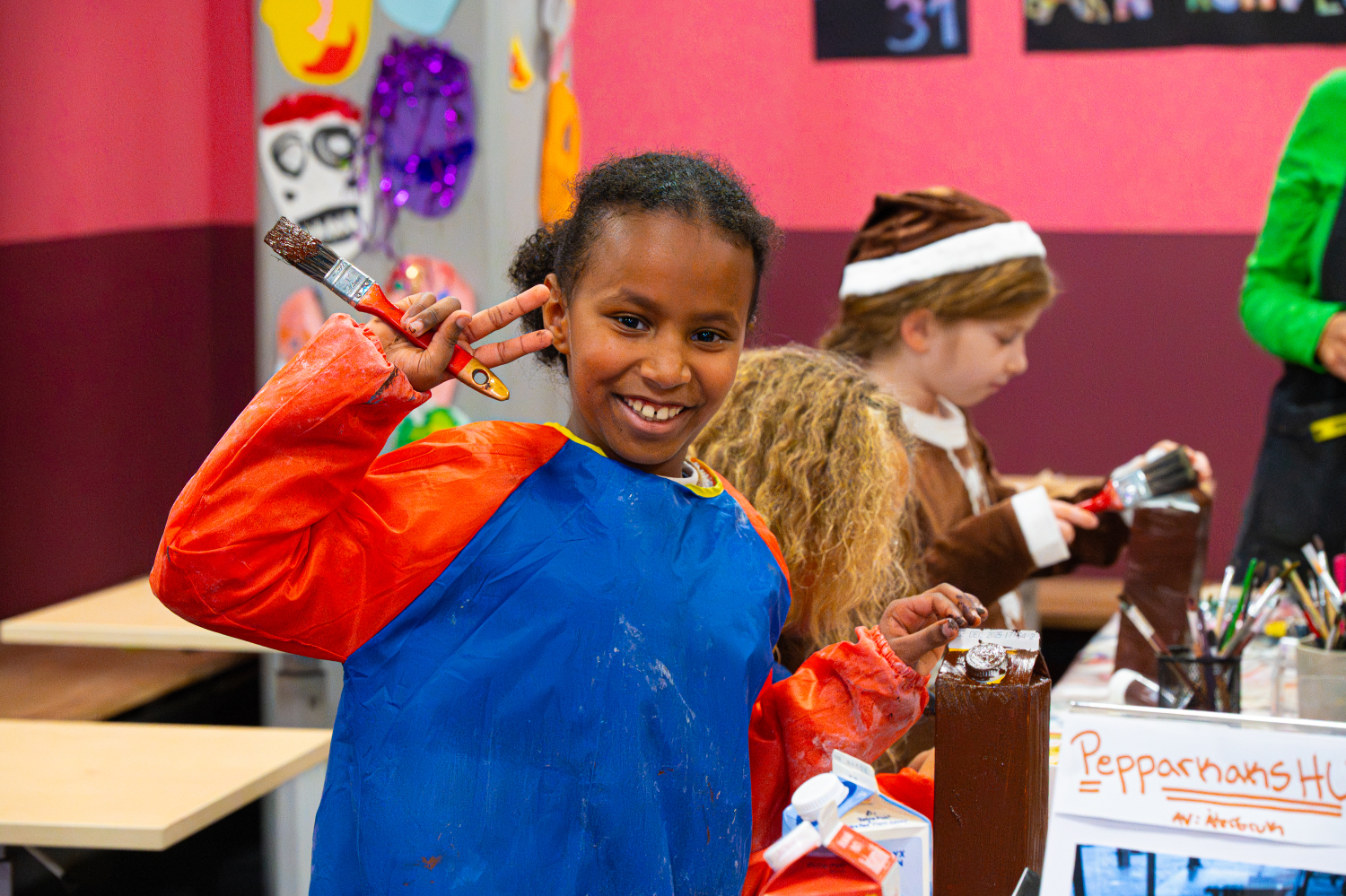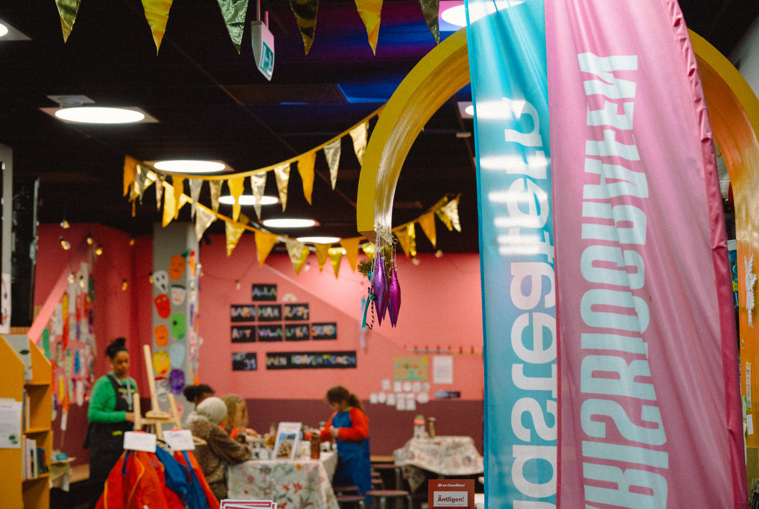 Vi tycker att barns idéer och skapande ska få ta plats i det offentliga rummet – och bli sedda på riktigt. Därför ställer vi ut konstverk av alla barn och unga mellan 5 och 13 år i vår foajé. Konsten som ställs ut 6 december 2025-29 januari 2026 har skapats av barn som deltagit och skapat i Skapandeverkstaden och utställningen firades med ett festligt vernissage.