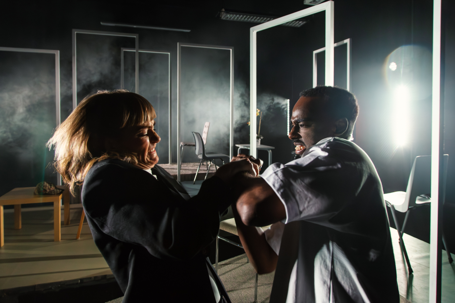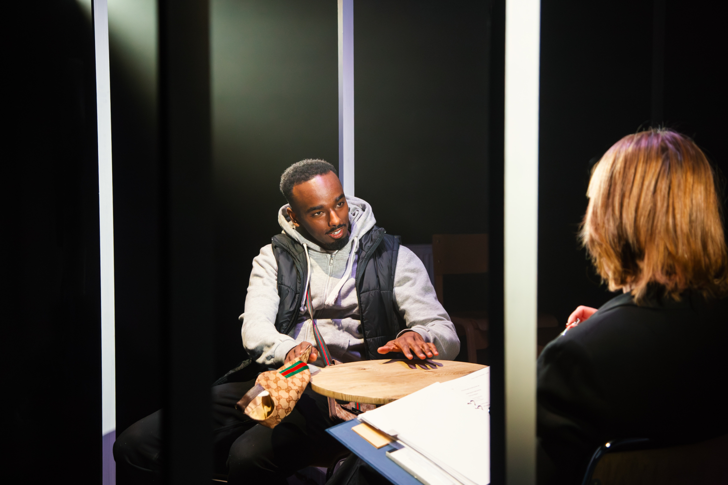 Ali är en sjutton år gammal kille från Tensta. Han har blivit påkommen med att förvara droger i sitt skåp i skolan och nu ska han träffa socialsekreteraren Emma som ska handlägga hans ärende. Det börjar som ett formellt samtal om ansvar, framtid och om att ta emot hjälp. Men snabbt förvandlas samtalet till en duell mellan två livserfarenheter. Ali kämpar med hur eller om han ska kunna visa vem han egentligen är. Emma bär på en stor hemlighet som riskerar att rasera allt. I föreställningen suddas gränserna mellan världarna ut. Vem räddar egentligen vem? Kutt mutt är ett intensivt drama om makt, segregation, och osynliga murar.