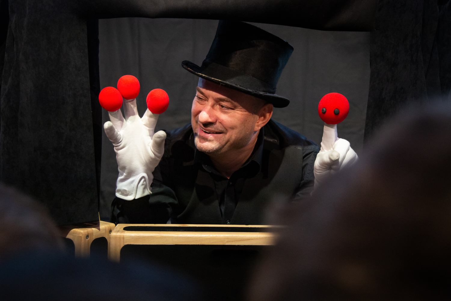En trollkarl bjuder in till magi, men ett oväntat fel har smugit sig in i hans nummer. Plötsligt börjar dockor och bollar leva sitt eget liv, och vill inte alls samarbeta. Den stackars trollkarlen inser att det inte alls är han som bestämmer längre. Dockteaterföreställningen "Handsken är lös" har urpremiär på Marionetteatern 16 januari 2026. Från 4 år.