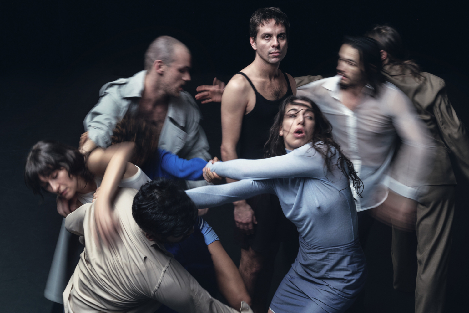 Koreografin Flesh Chariots / Chariots of Flesh låter femton kroppar blöda in i varandra, som våt färg på en målarduk. Tillsammans skapar dansarna en mänsklig hägring, kroppar som krockar, sammanfogas och imploderar. Genom subtila skiftningar blir dansarna en levande organism, en föränderlig illusion som går från total stillhet till fullständig kollaps.