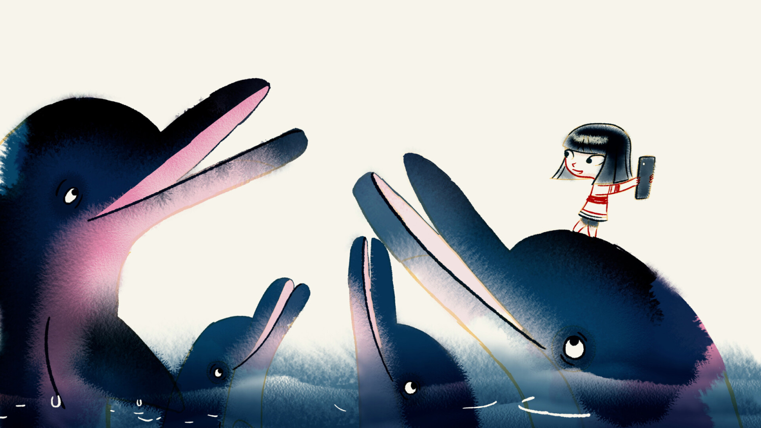 En flicka vandrar genom stad, landsbygd och strand, alltid med blicken fäst vid en mobiltelefon. På vägen möter hon bland annat en björn, delfiner, pirater och en utomjording. Alla försöker fånga hennes uppmärksamhet, men hon är likgiltig inför allt runt omkring. Efter en rad äventyr, inklusive en kort rymdresa, hamnar flickan på en cirkus och klättrar upp i en berg- och dalbana. Ingen hade väntat sig att mobilen skulle glida ur hennes händer och gå i bitar på marken.