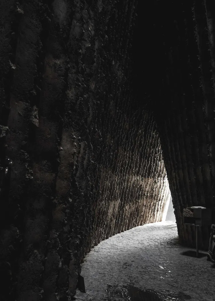 Det är ett rått och nästan kontemplativt rum. Det är ett främmande, lite avvisande rum. Mannen i pjäsen är en del av rummet, rummet är en del av honom. Han är lite karg och nästan kall, det är rummet också. Han är på en resa mot slutet, i ett rum som är slutet och frågan både rummet och han ställer sig är: Finns det någon väg ut? Det är därför det är den här kröken i rummet. Vad finns där bakom, är det vägen ut? Det vet vi inte.
